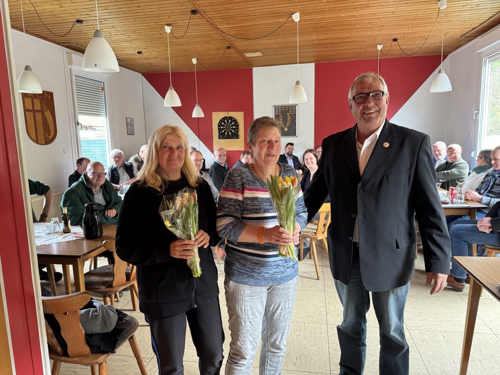 Bild 2: Für ihren hervorragenden Einsatz im Service erhielten (von links) Beate Politzer und Gabi Messemer ebenfalls ein Blumenpräsent von Klemens Breitenbach